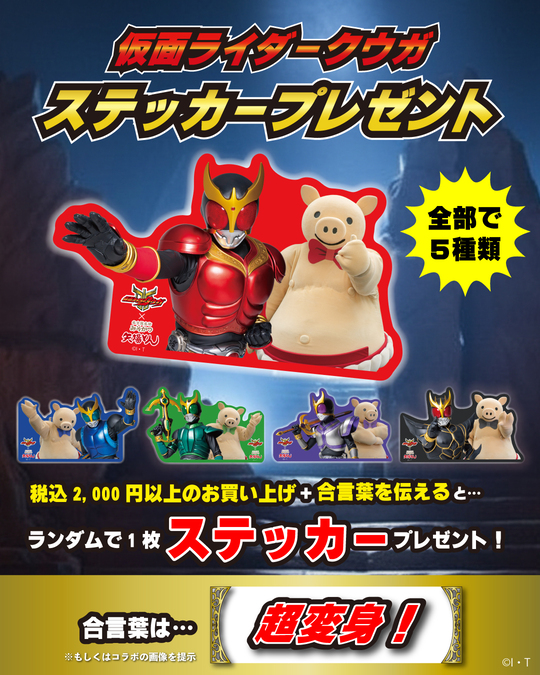 2,000円以上お買い上げのお客様で、スタッフに合言葉「超変身」を言われた方に、ランダムでステッカーを1枚プレゼント!