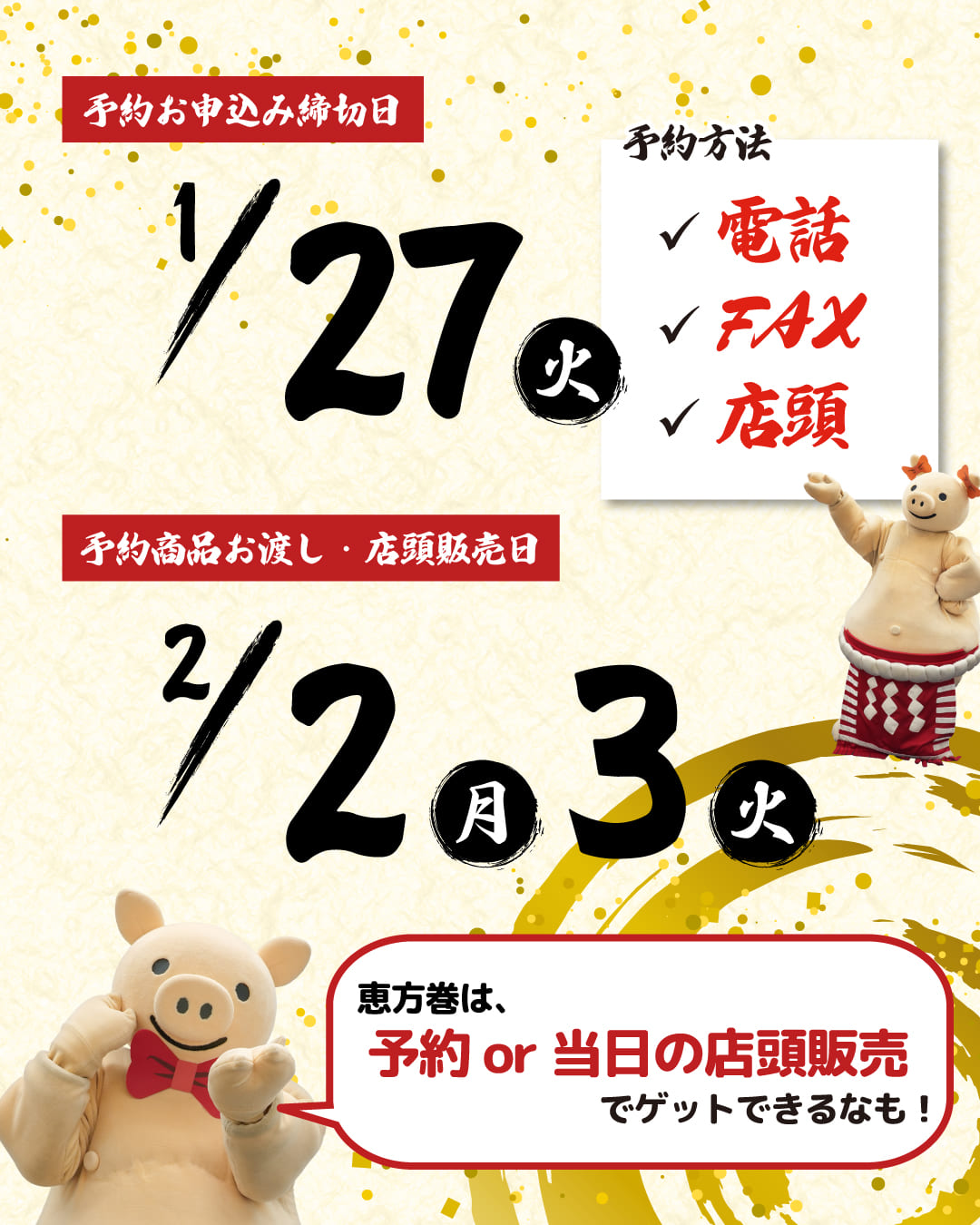 恵方巻は、予約、もしくは当日の店頭販売より購入できます。