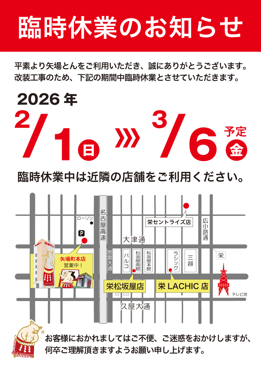平素より矢場とんをご利用いただき、誠にありがとうございます。