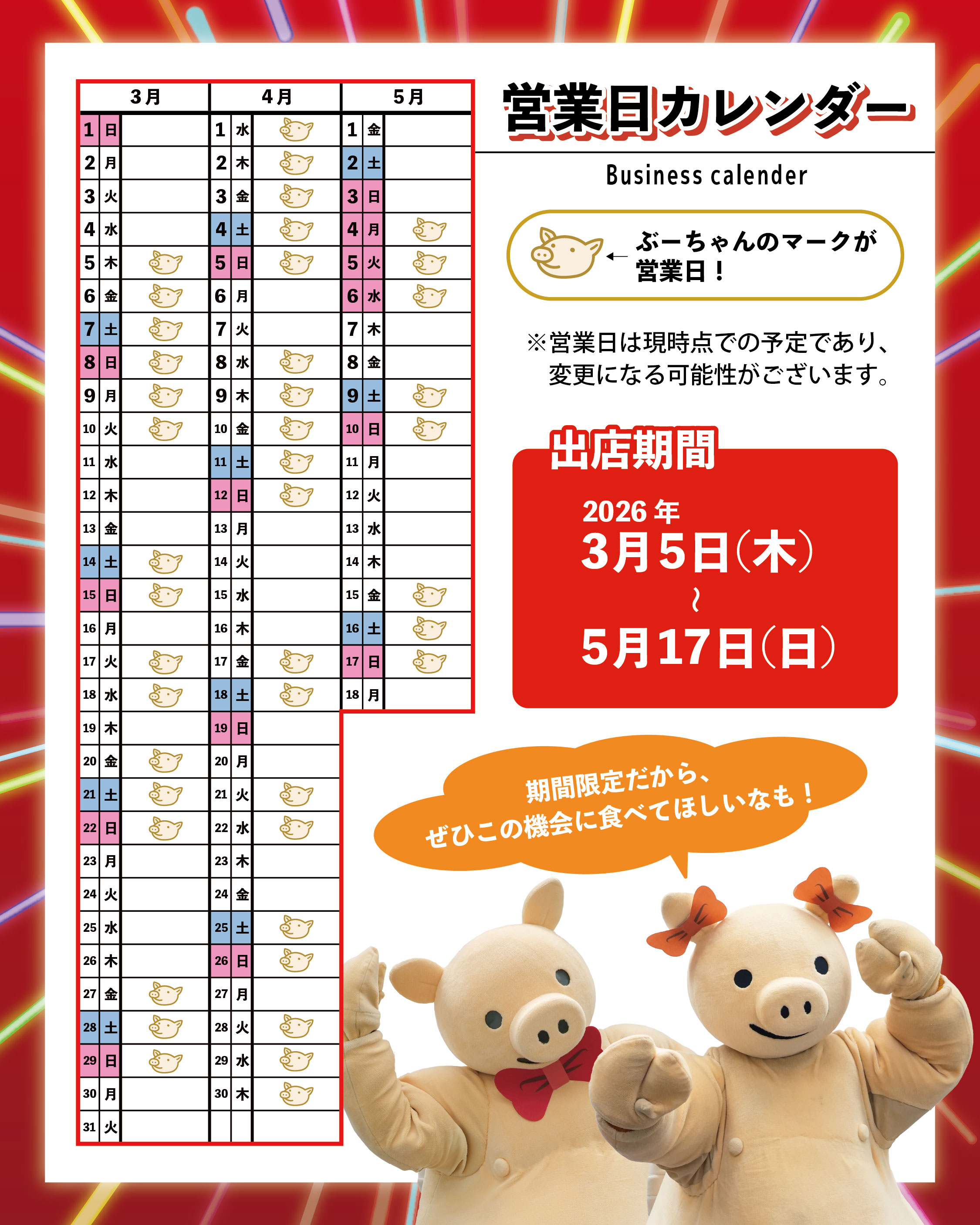 ※営業日は現時点での予定のため、変更になる可能性がございます。あらかじめご了承ください。