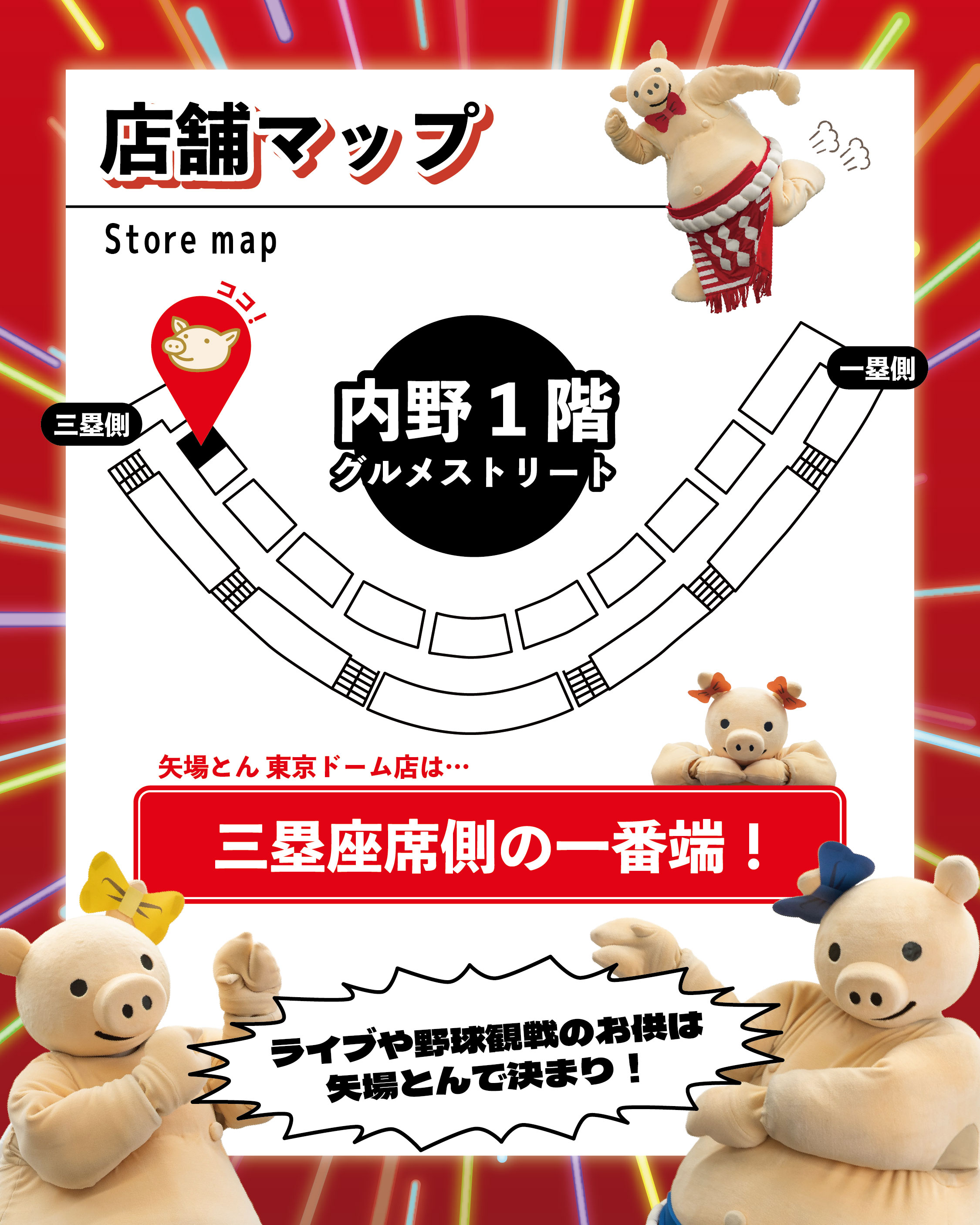 矢場とん東京ドーム店の位置は、三塁座席側の一番端です!