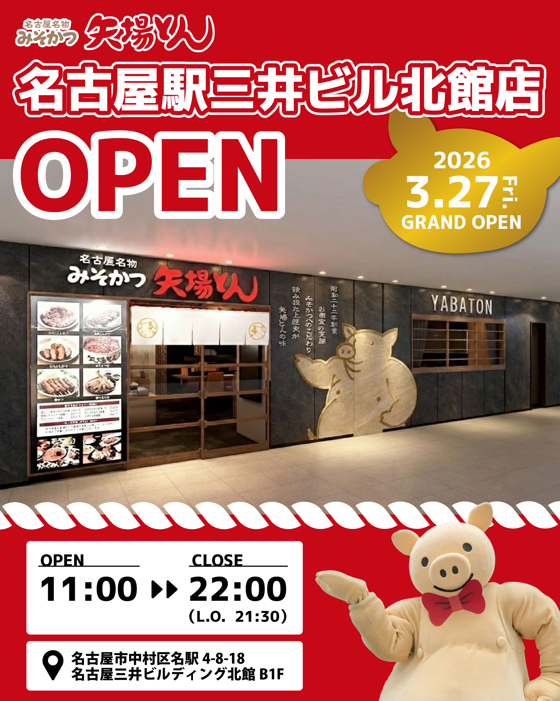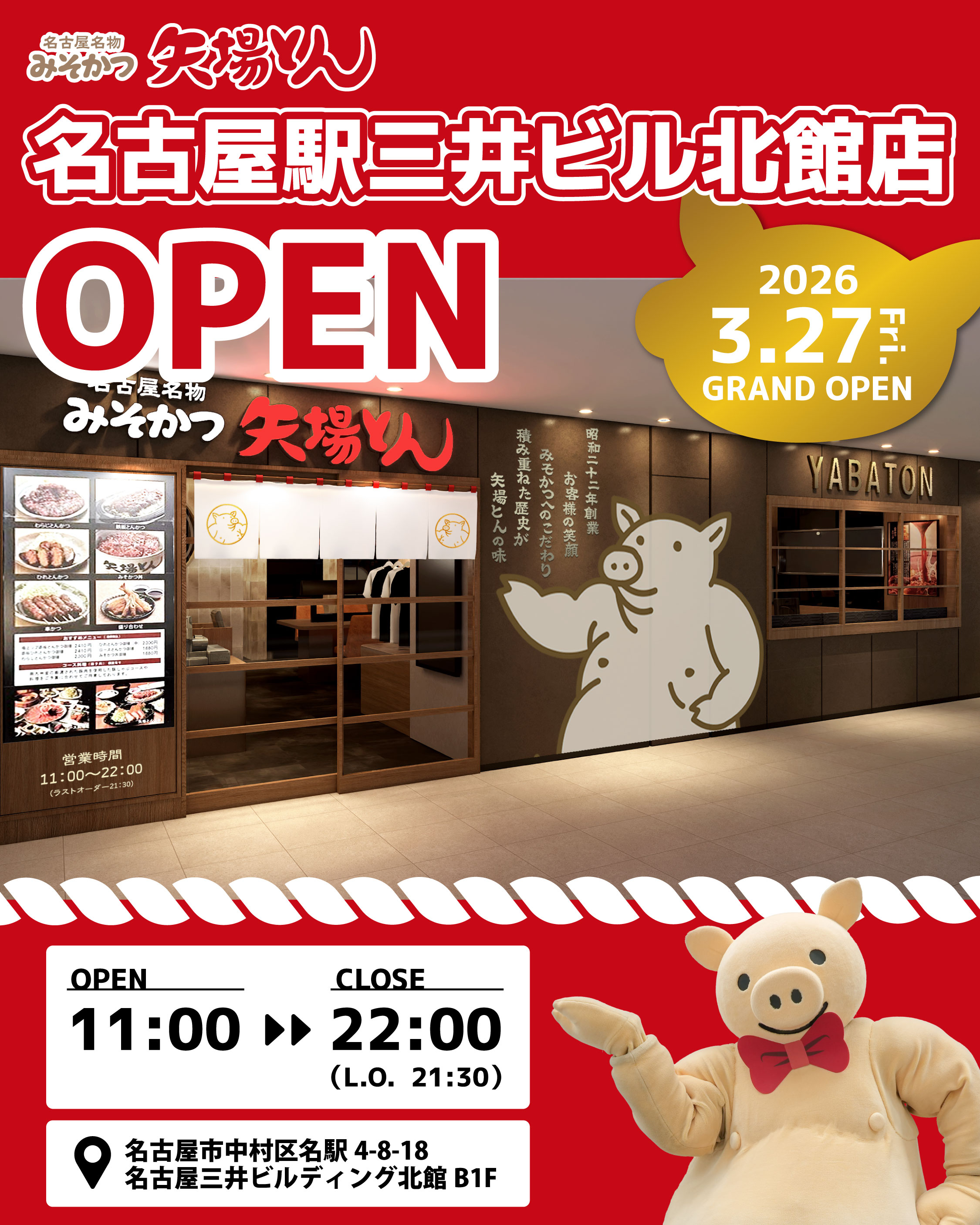 2026年3月27日(金)に「矢場とん 名古屋駅三井ビル北館店」がグランドオープンします!