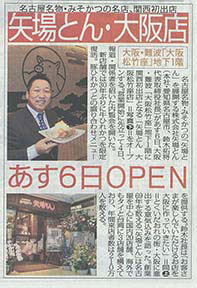 > 「スポーツニッポン関西」にて、矢場とんの大阪松竹座店のオープンについて掲載されました!